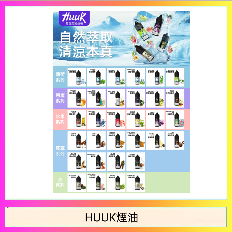 MEHA HUUK 魅嗨虎克煙油 30ml,主打 耐抽不膩、風味穩定 的日常型煙油定位。採用美國技術配方與天然萃取原料,煙霧細緻、喉感順口不嗆,長時間使用依然保持乾淨口感,是許多台灣玩家的日常補油首選。