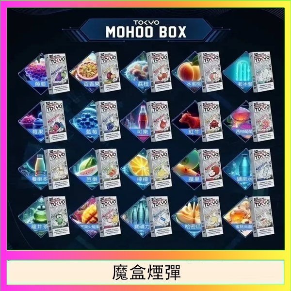 2024年,TOKYO MOHOO BOX 領先推出全新的魔盒煙彈系列,不僅帶來突破性的技術創新,還以優雅商務風格呈現,為每一位電子煙愛好者帶來全新的吸煙體驗。無論是豐富的口味選擇還是先進的霧化技術,TOKYO MOHOO BOX 都能滿足您的需求,讓每一口煙霧都更加完美。